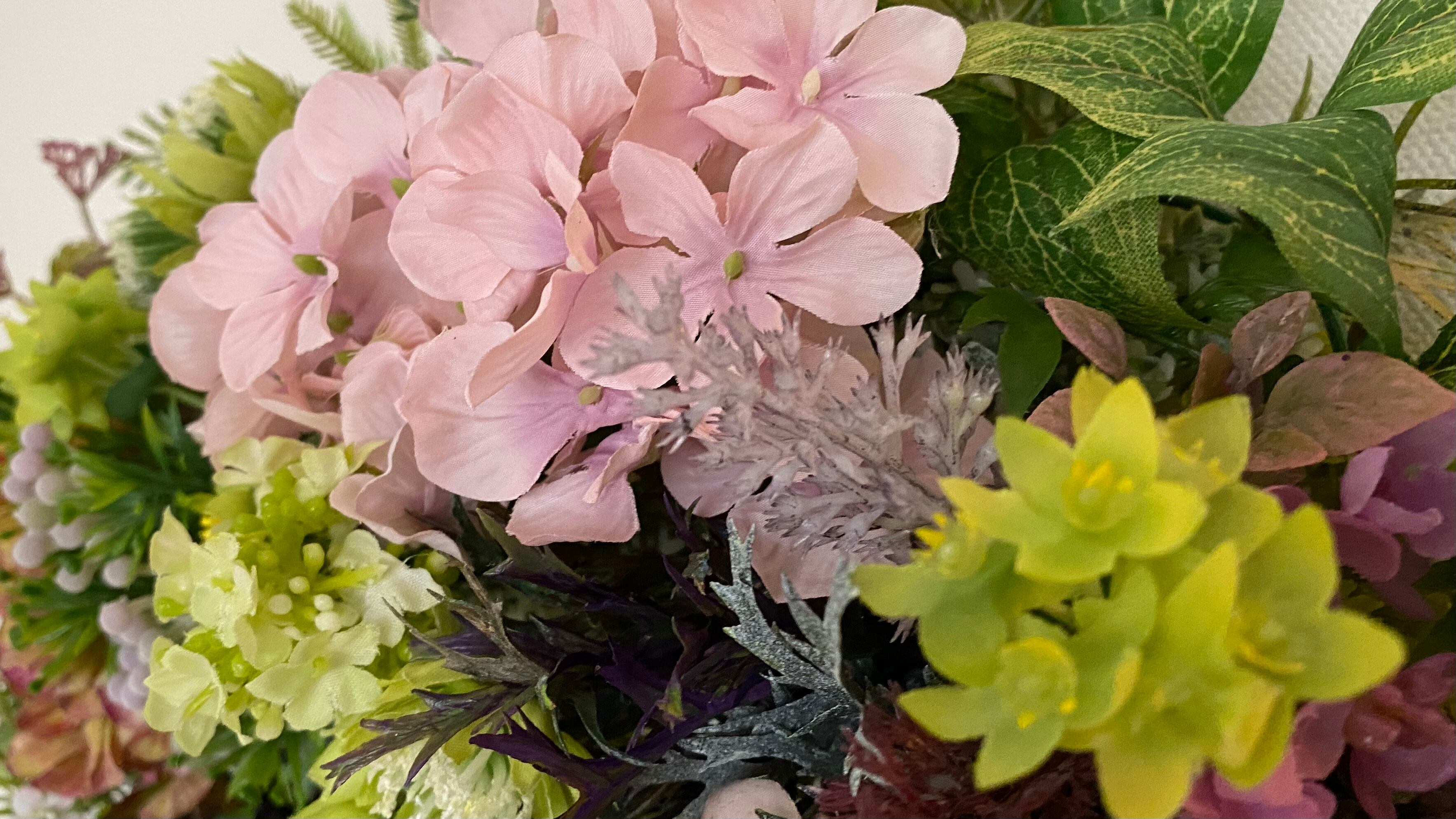 ◇アーティフィシャルフラワー ◇絵描きである仁後真理子(にごまりこ)さんの創作リース。まるで春の草原で誰かに手渡されたかのような素敵なリース。壁や扉に掛けるのも良いですが、手にもって間近で眺めているだけでウキウキする花や緑の組み合わせの作品はあまりないと思います。 ◇アストランチア、その他花などを使用。 ◇SIZE:H19(25)×W19(25)×D10 ※カッコ内は葉や枝の最大部分 ◇作者:仁後真理子(にごまりこ)