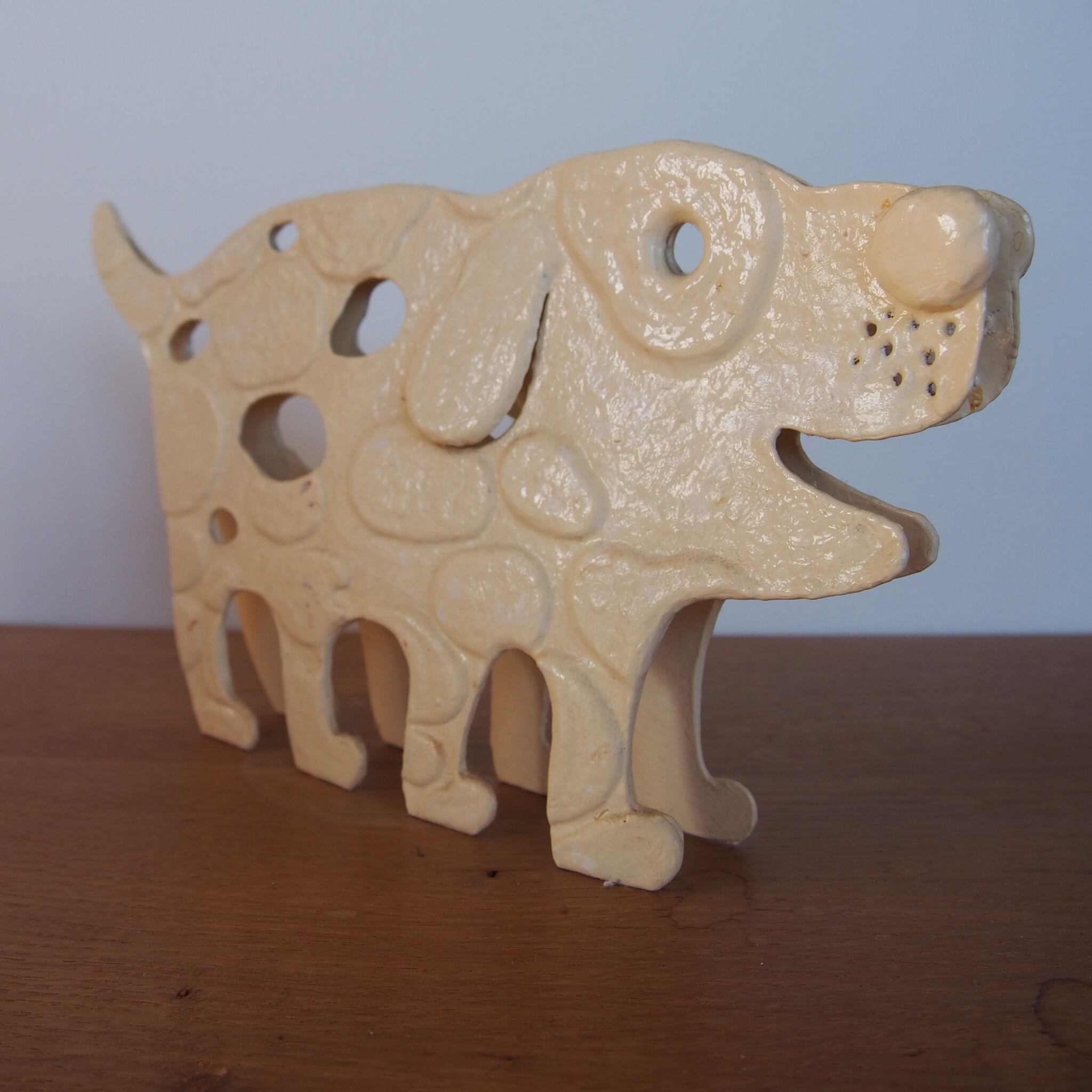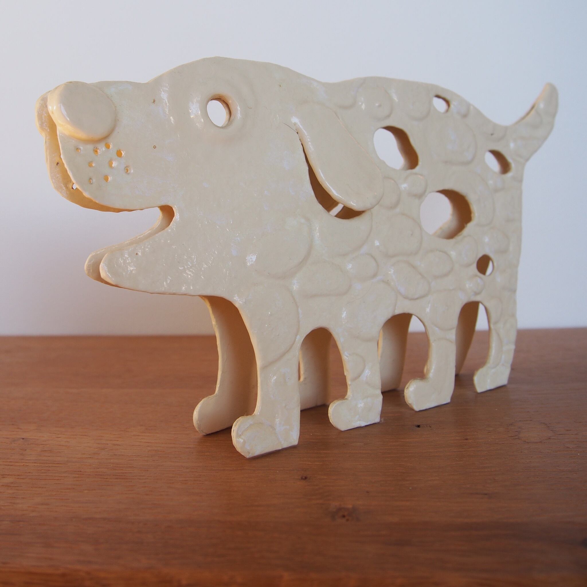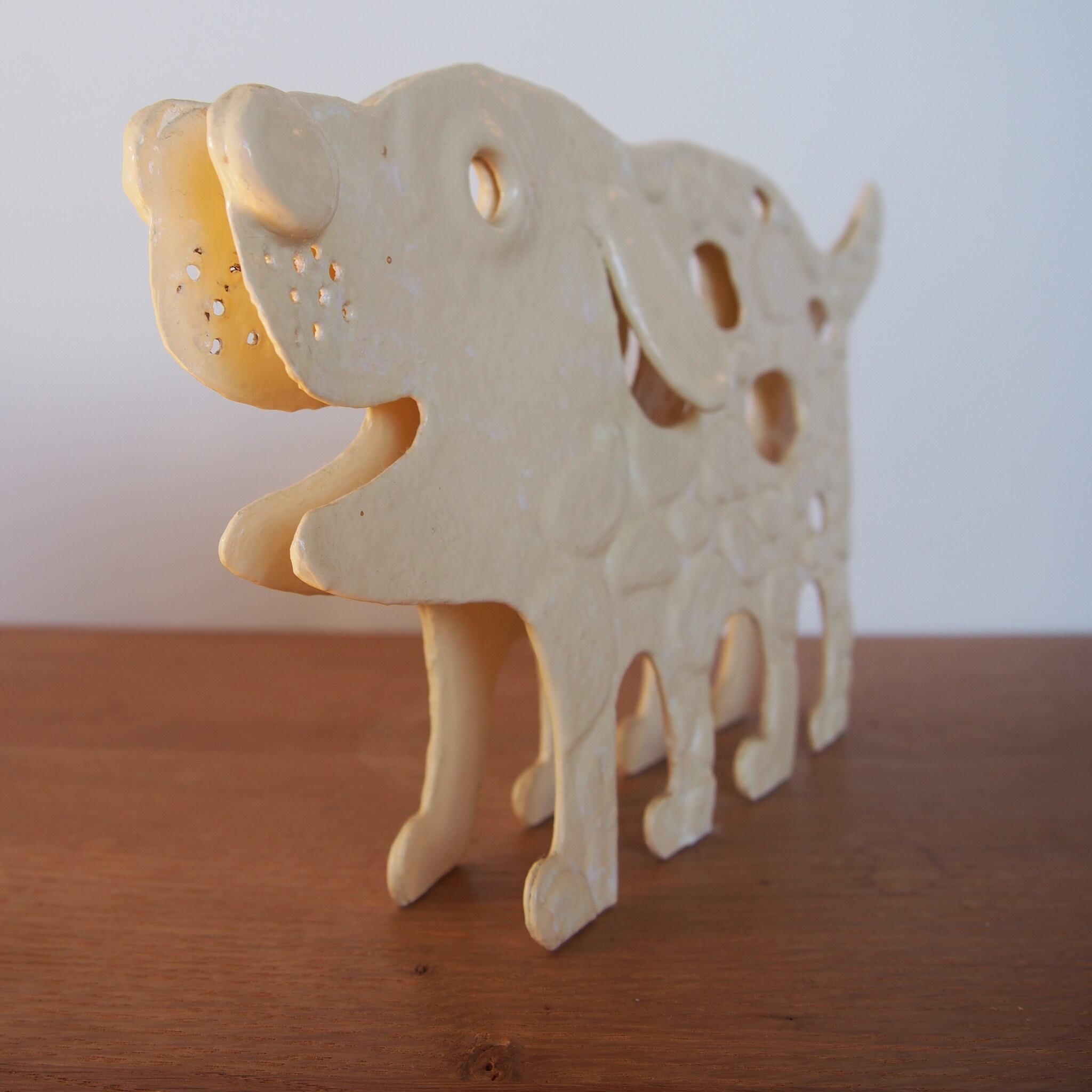 ◇仁後真理子(にごまりこ)さんの個展でも人気だったを紙で創られたドッグ。右と左で別の表情を持っていて左右どちらも可愛い。犬のオブジェが好きな方へ。玄関やデスク、飾り棚などに置いてみる度にニコッとして欲しいです。