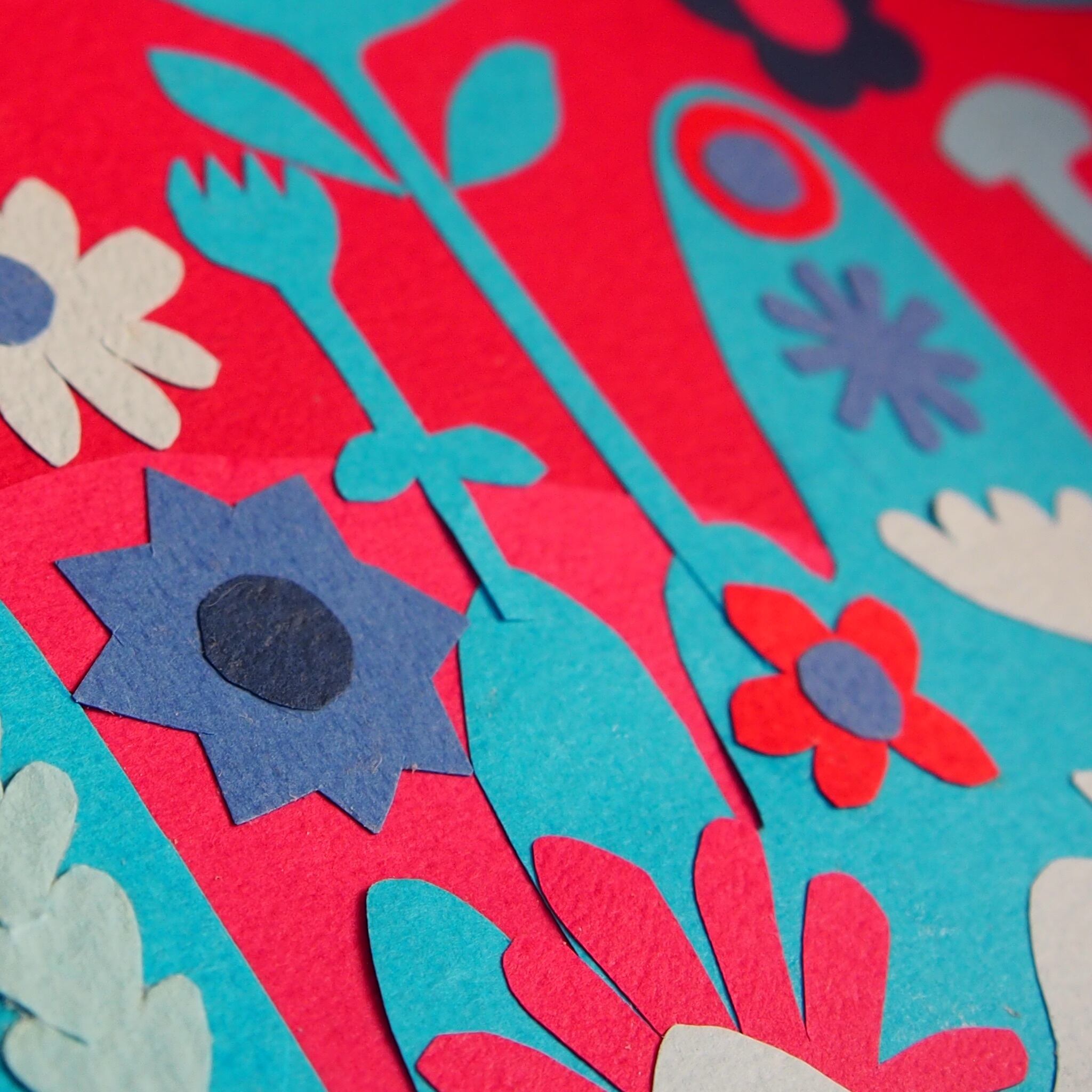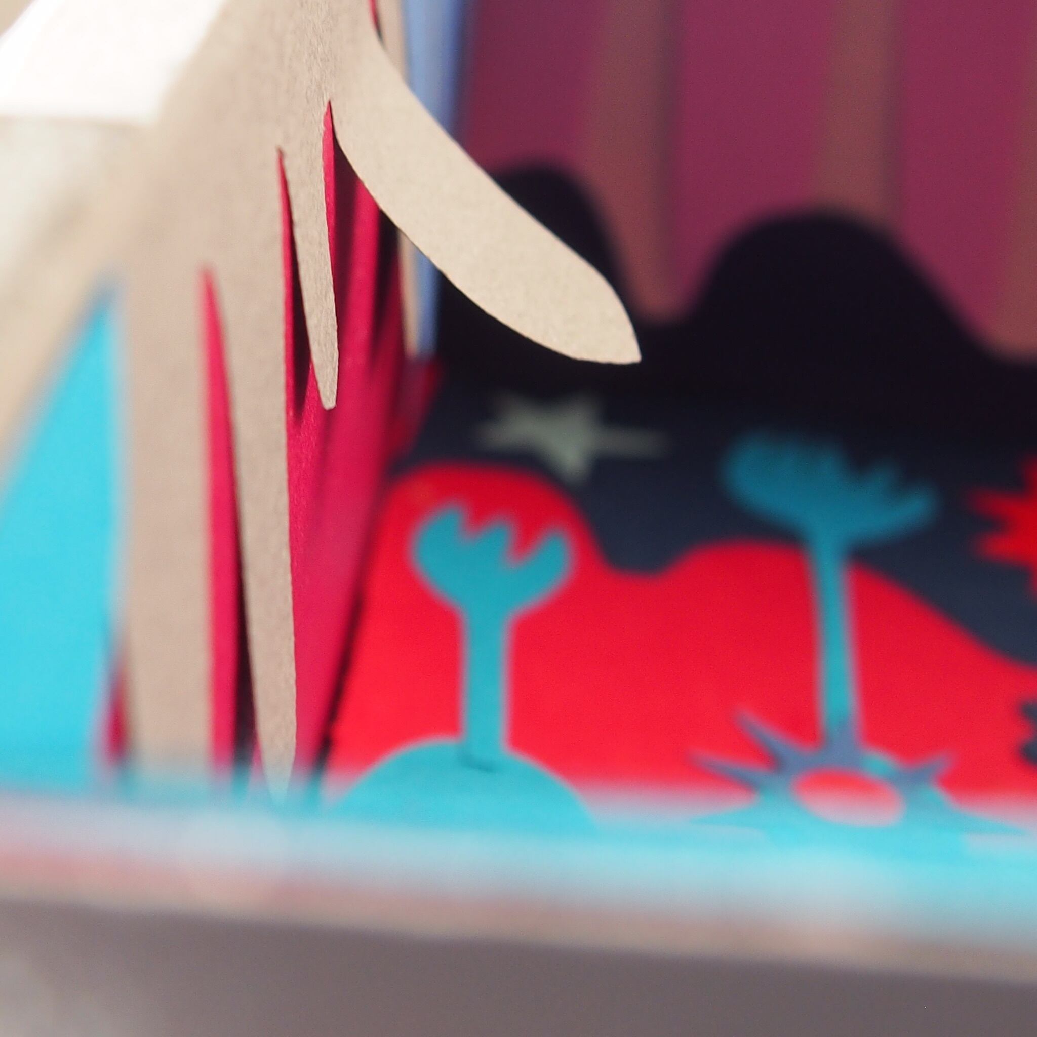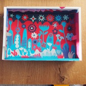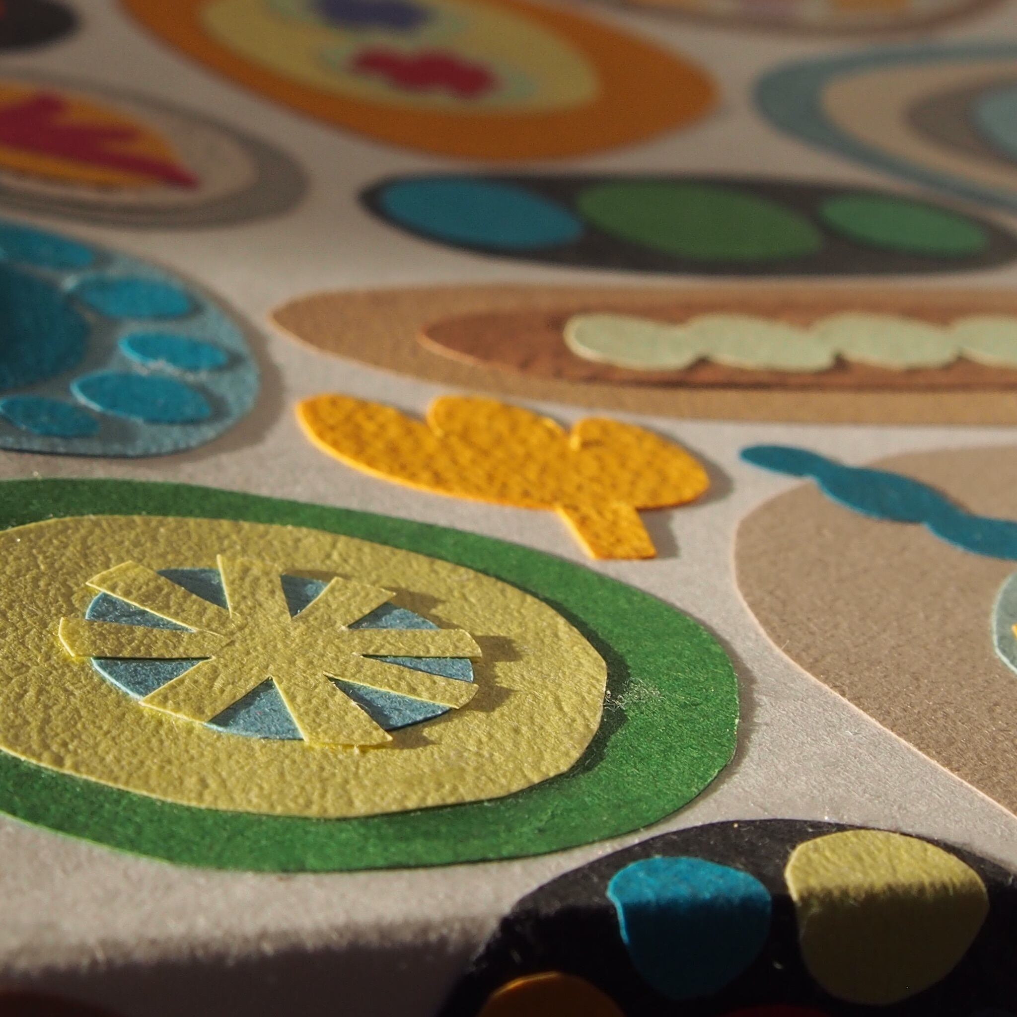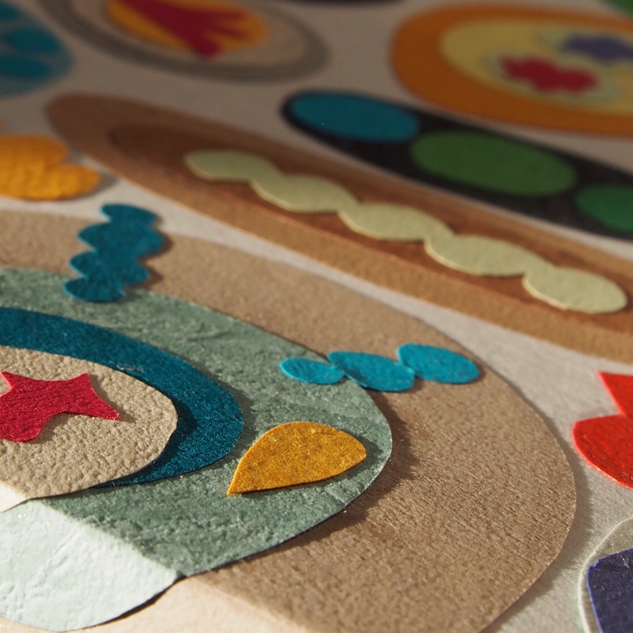 ◇こちらも個展に出展していた作品。作者の手によって貼り絵で装飾されたpaper box。作者の仁後真理子(にごまりこ)さんの創作は本当に不思議です。モチーフがある訳ではなく、手を動かしながら材料を見ながら創りあげていくそうです。そんな魅力がたくさん詰まった世界に1つの作品です。