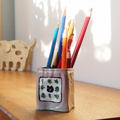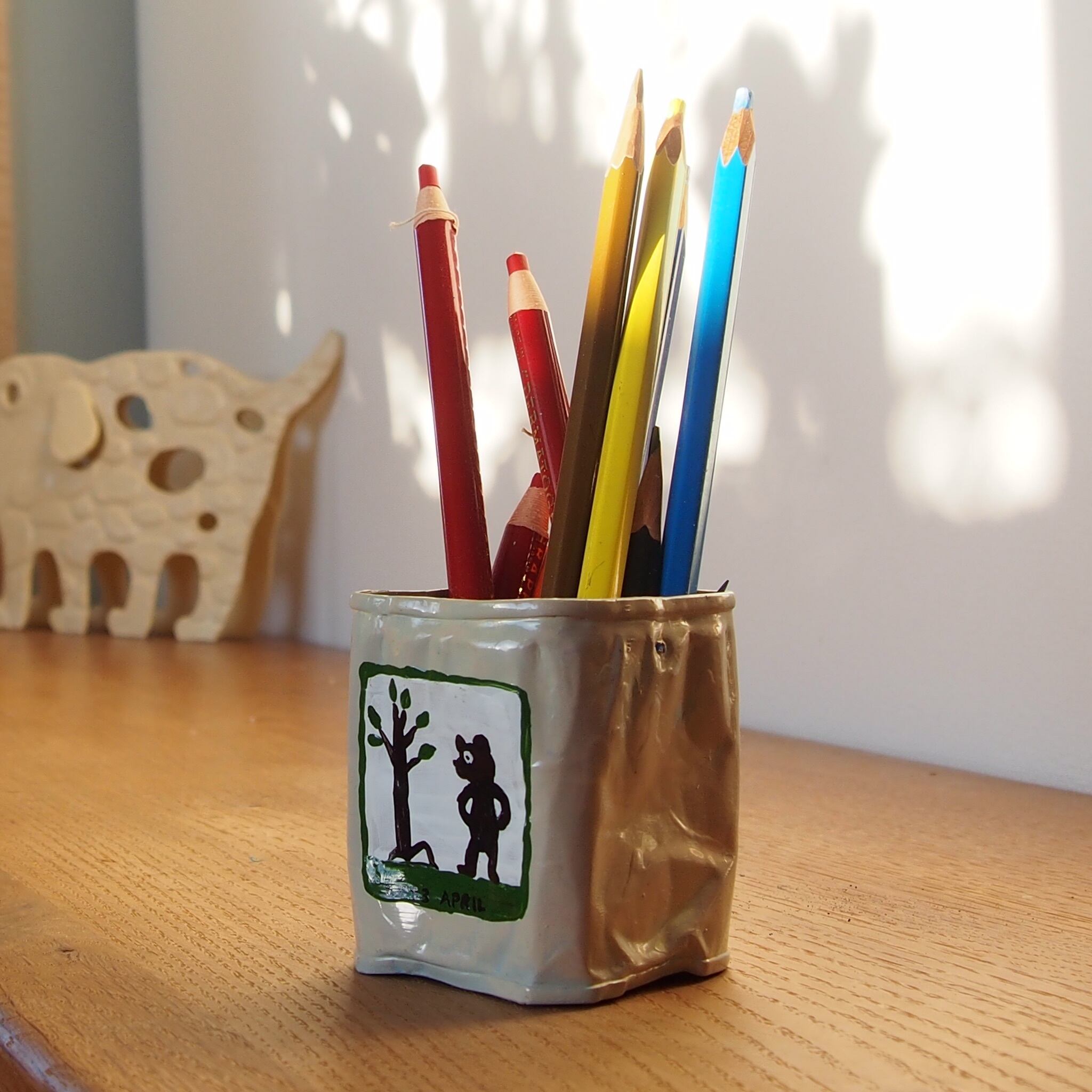 ◇どこにでもある食品のcanを使ってハンドメイドで創られたcan box。おしゃれな鉛筆立てのようにも使えたり、底には水抜きの穴がついているので小さなプランターとしてもつかえます。人のような立ったベアーとグリーンの組み合わせのなんともいえない組み合わせは私もお気に入りのアイテムです。2013年4月の作品