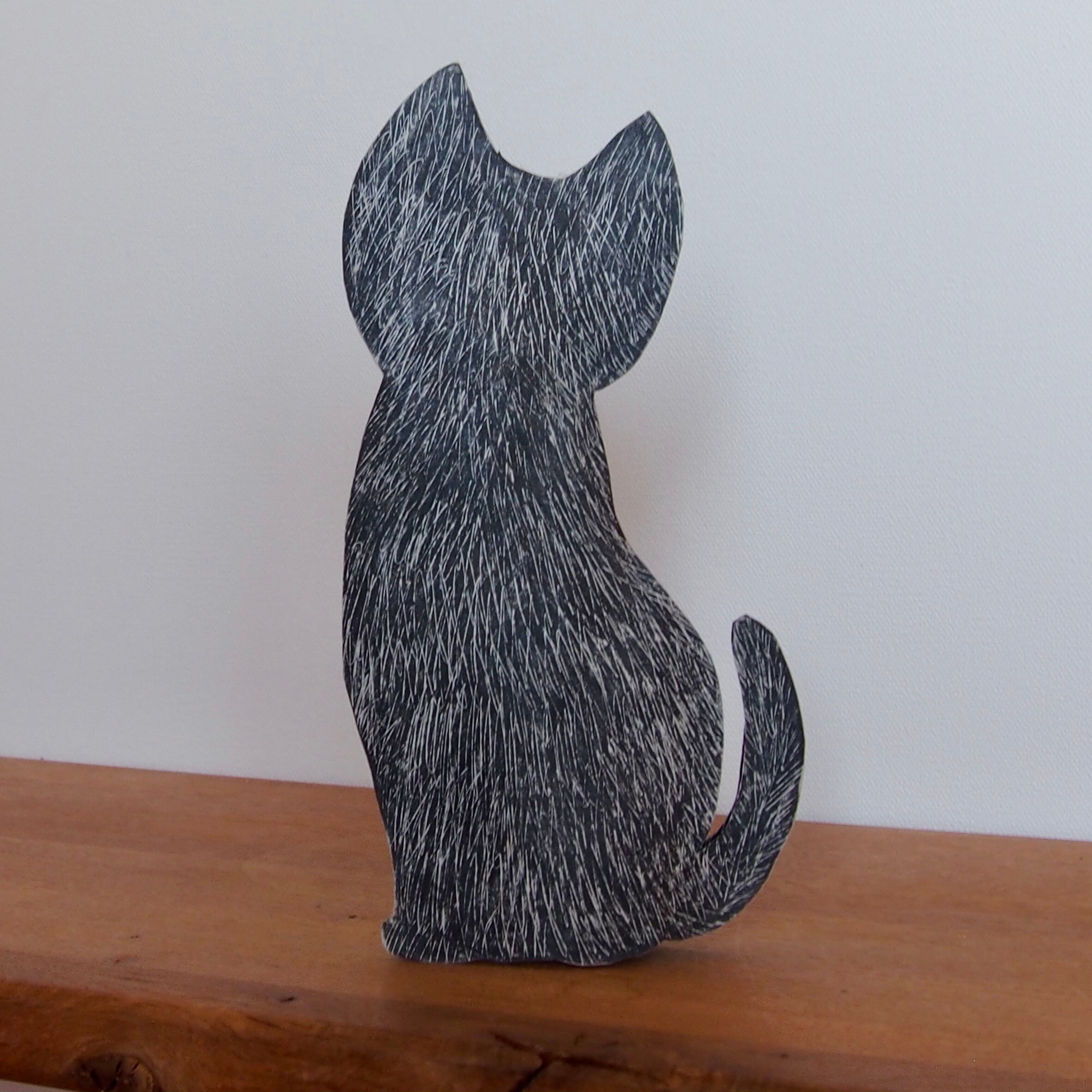 すました表情も素敵ですが、私は後姿が大好きです。クールさが際立つのとは反対に、キュートな後姿が猫好きの心を惹きつける魅力的な作品ですね。